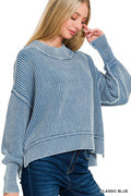 ZENANA Washed Side Slit Oversized Cropped Sweater